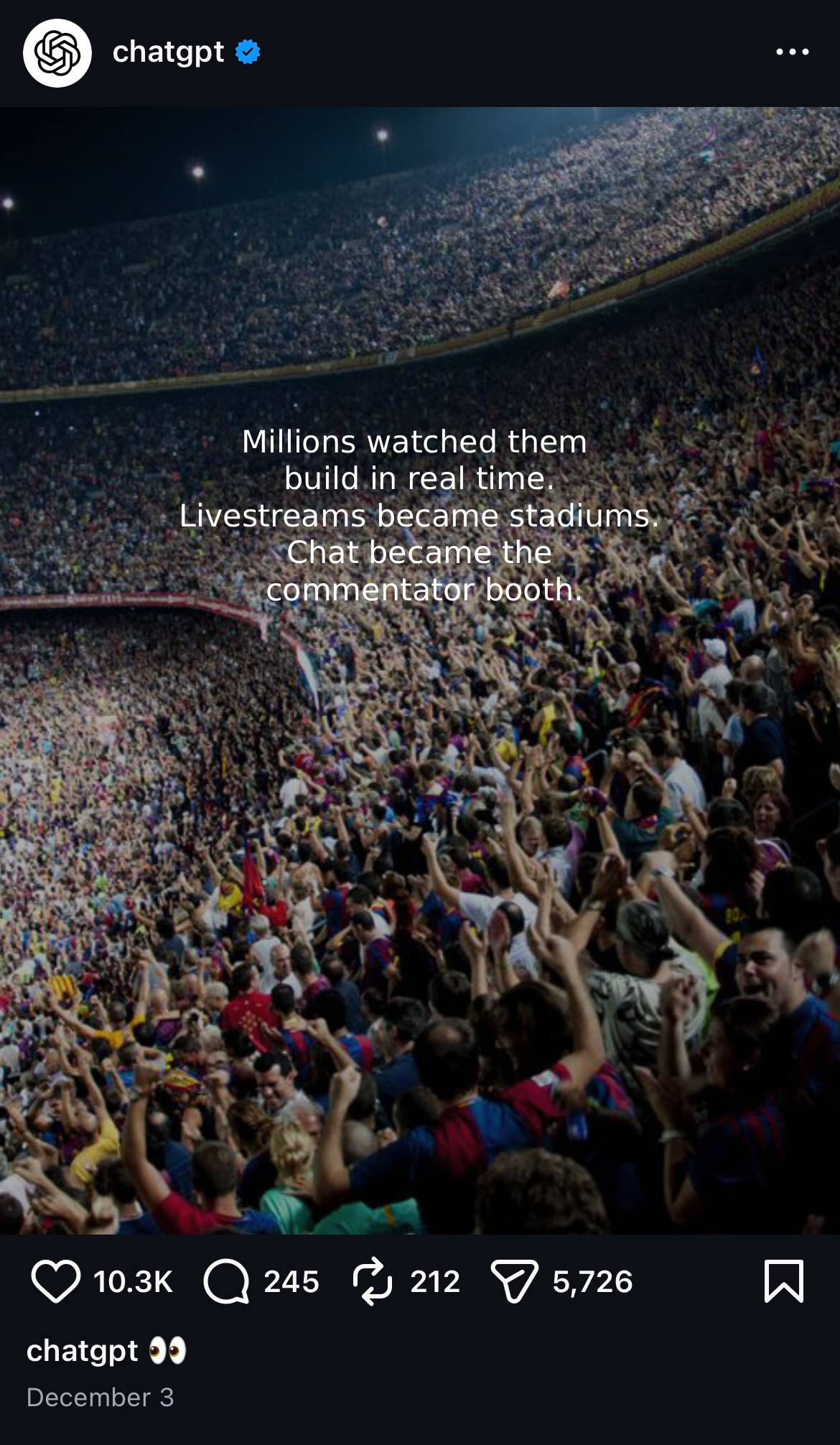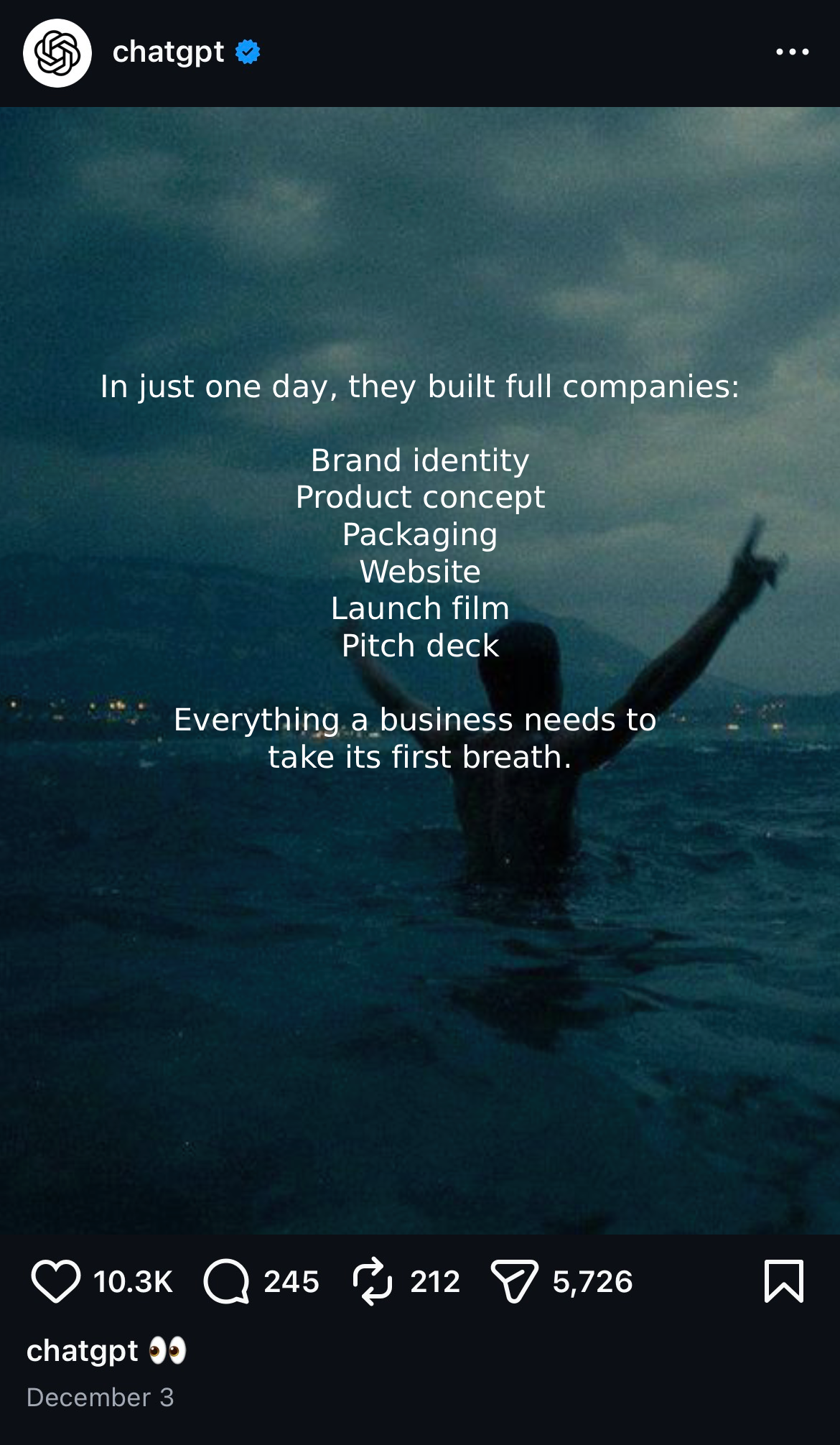 Most dreams don’t die from lack of talent — they fade because the first step feels too large, too lonely, too far from where we stand. Inside every person is an ambition they’ve quietly carried for years. So, we created The Olympics of Imagination — a global platform where anyone, anywhere, was given one day to bring their dream to life with ChatGPT as their collaborator. In twenty-four hours, participants created a business ready to take its first breath — the entire architecture of a company built in one extraordinary sprint. Creators live-streamed this process, turning the private act of beginning into a shared moment of courage. At the end, a panel selected the idea that stretched reality the furthest and crowned the winner with a single reminder: “Yesterday this didn’t exist. It was seen as impossible, until you made it real.” The winner received funding. But everyone received proof: With ChatGPT, your long-held ambitions don’t have to stay unattempted. The distance between dreaming and doing is now a single decision.